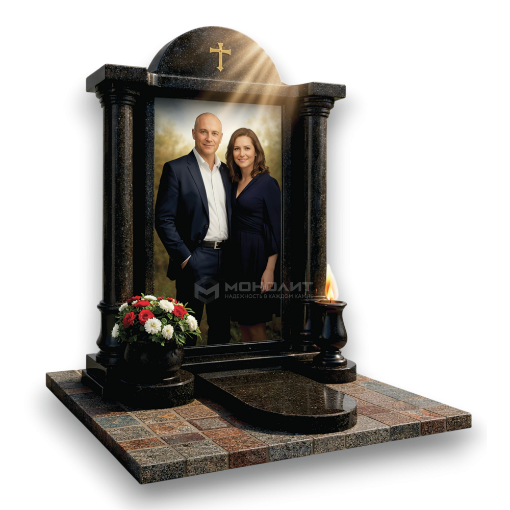 Арка под сияющим крестом. Двойное фото, подсвечник — свет веры для двоих