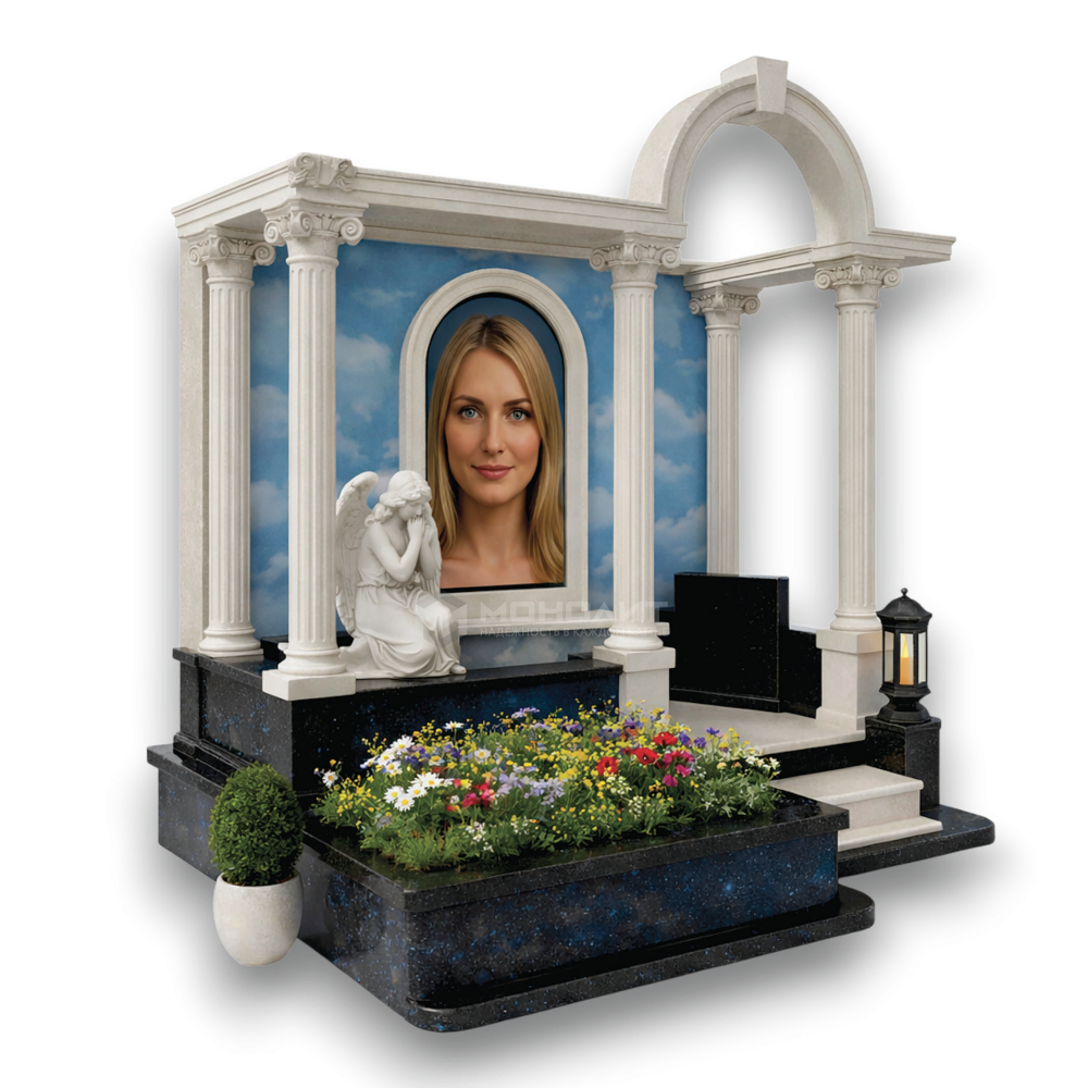 Арка с ангелом-молитвенником. Ниша фото, цветы и фонарь — тихая молитва за душу